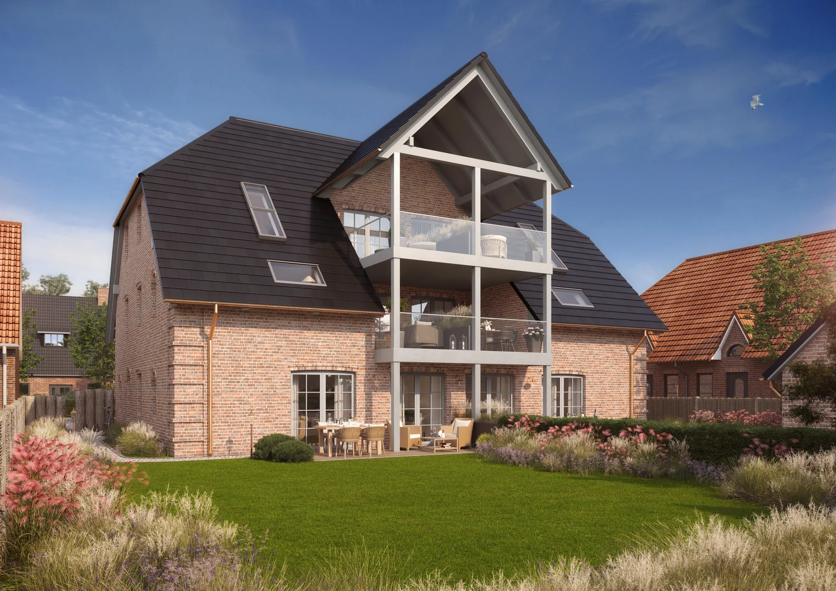 Neubau-Erdgeschosswohnungen mit Terrasse, Gartenoption und Ferienvermietungs-Perspektive. Nur ca. 250 m Luftlinie bis zum Strand